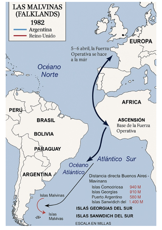 وكان مبرر هذه الاستراتيجية الأخيرة أن الحكومة العسكرية بقيادة غالتييري (1981–1982) أعلنت في ذلك اليوم، 2 أبريل 1982، أمام حشد كبير اجتمع أمام قصر كازا روسادا: “اليوم، 2 أبريل، بدأنا للتو موقفنا لاستعادة جزر المالوين وكل منطقتها ذات التأثير”. عندها هتف الجمهور بأغانٍ وطنية حماسية تشبه تلك التي تُسمع في ملاعب كرة القدم في أرض البامباس. وكانت كلمات أحد تلك الهتافات: